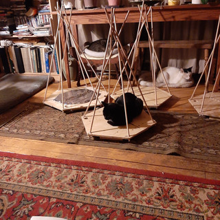 We've (all) had a great time making this and I have not made it alone. Many, many paws were involved. Enjoy the photos of the trial tipis and prototypes